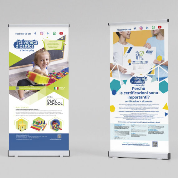 I roll up banner sono degli espositori autoavvolgibili per uso interno ed esterno, da usare in negozio o in fiera. Realizzazione della grafica di stand fieristici, e del relativo materiale promozionale occupandomi dal progetto iniziale fino agli esecutivi forniti per la stampa stampa.