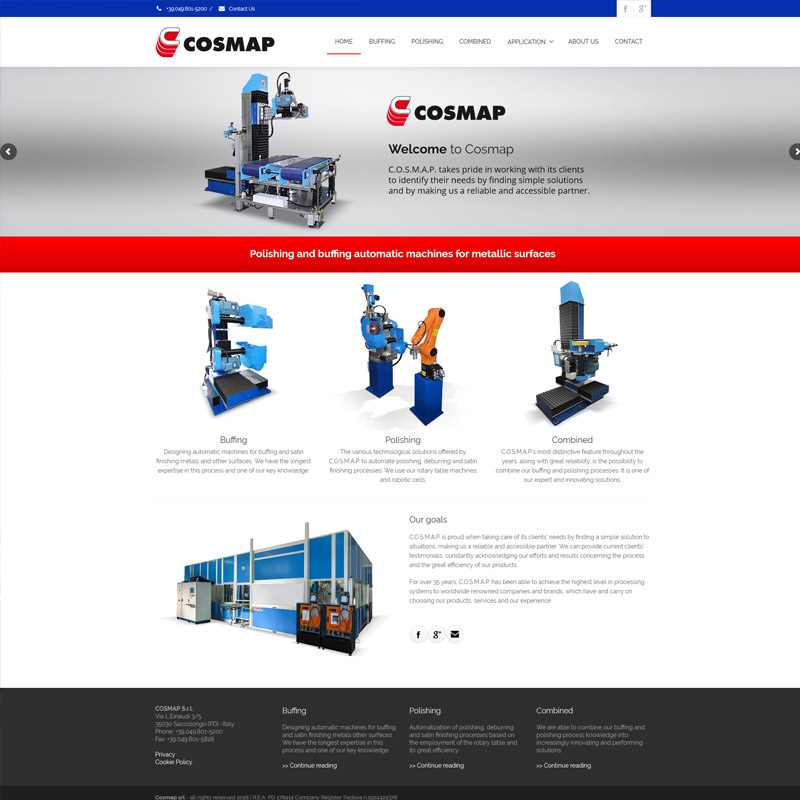 Il sito, commissionato dalla ditta Cosmap srl, è orientato al mercato americano. La richiesta era quindi di un prodotto molto leggibile e che avesse un richiamo con i colori della bandiera statunitense.